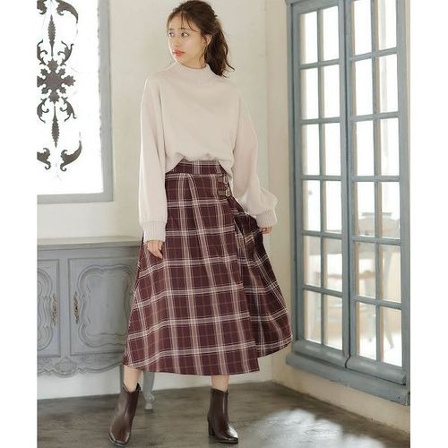 コーディネート タートルネック畦ボリューム スリーブニット サイドベルトチェック柄ミディ スカート レースupブーツ Ingni イング 公式通販 Ingni Store イングストア
